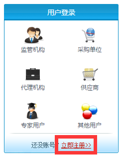 7、在新打開的“用戶注冊”頁麵中點擊“采購單位”圖標(如下圖紅色方框所示)。