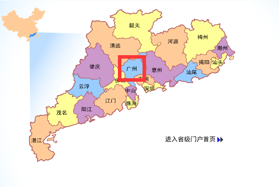 3、在地圖中點擊“廣州”區域(如下圖紅色方框所示)。