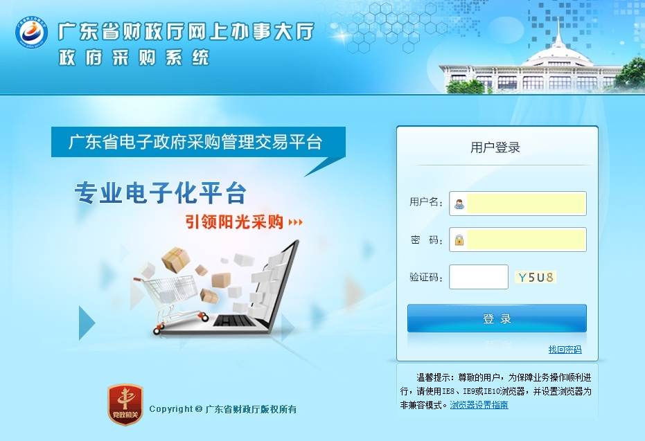 1、采購人使用網頁瀏覽器打開廣東省政府采購網首頁(具體網址為http://www.gdgpo.gov.cn/)。